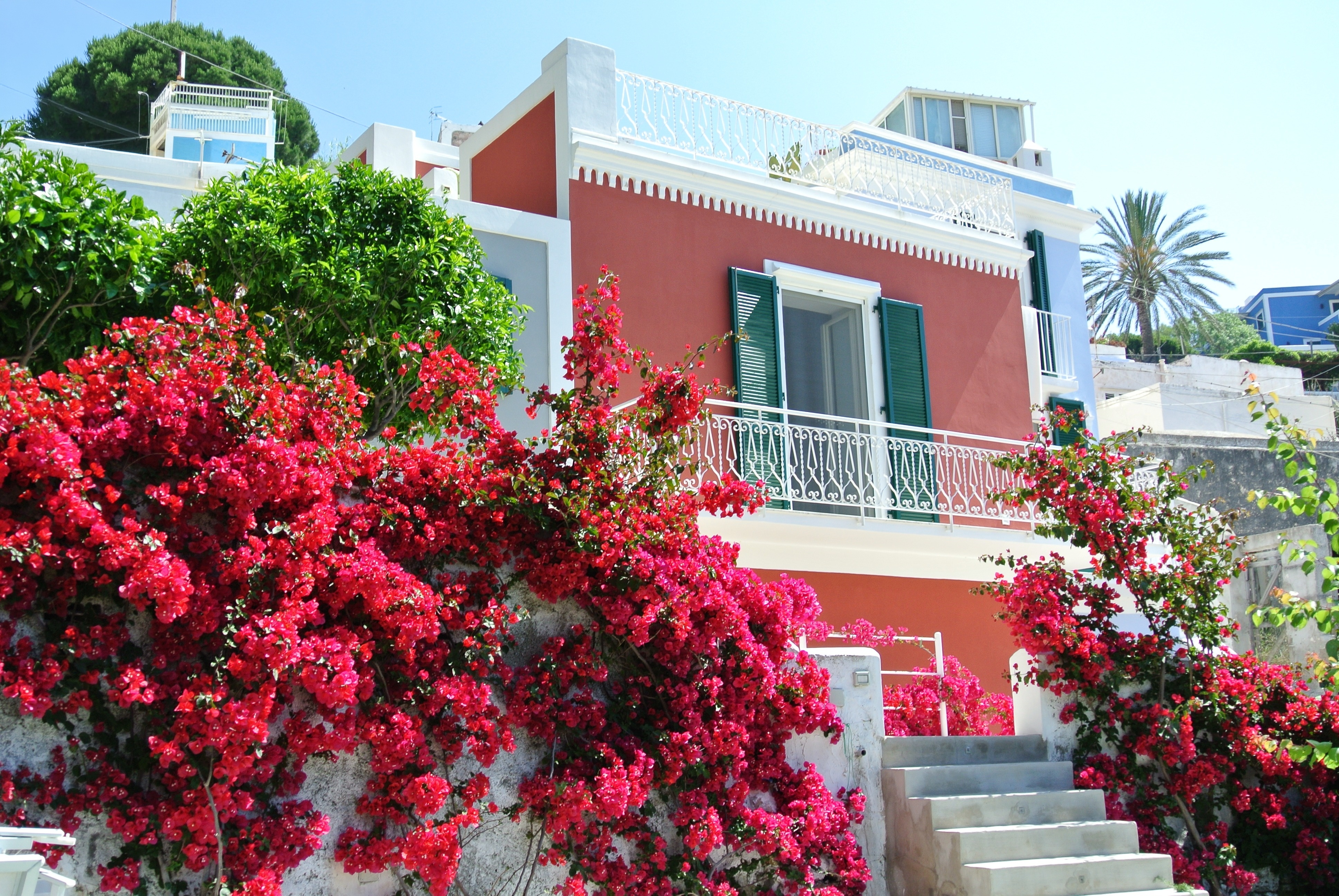Affacciata sul porto di Santa Maria, con giardino di 500mq ombreggiato da un pino italico e una quercia secolare.